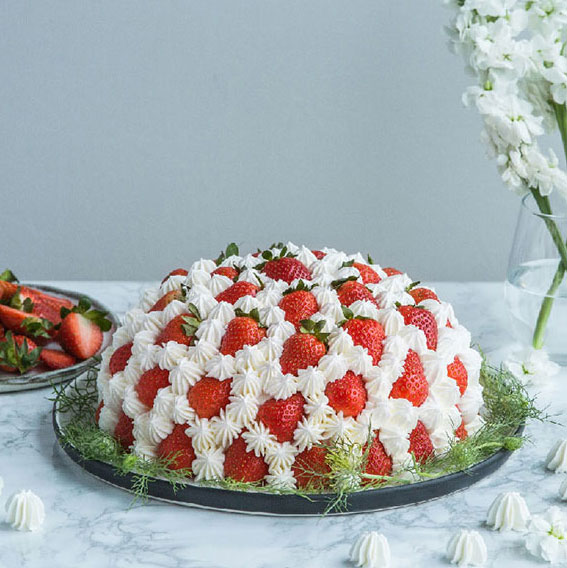 新鲜草莓、手工糖花、进口抹茶乳脂奶油、巧克力糖豆